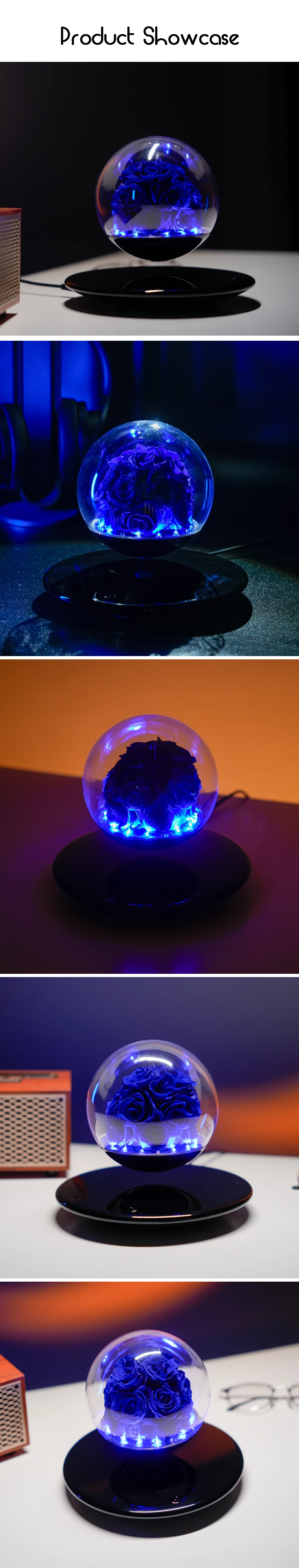 Room Decoration Couples Valentine Gift Magnetic Levitation Floating LED Night Light Forever Eternal Preserved Rose for Birthday