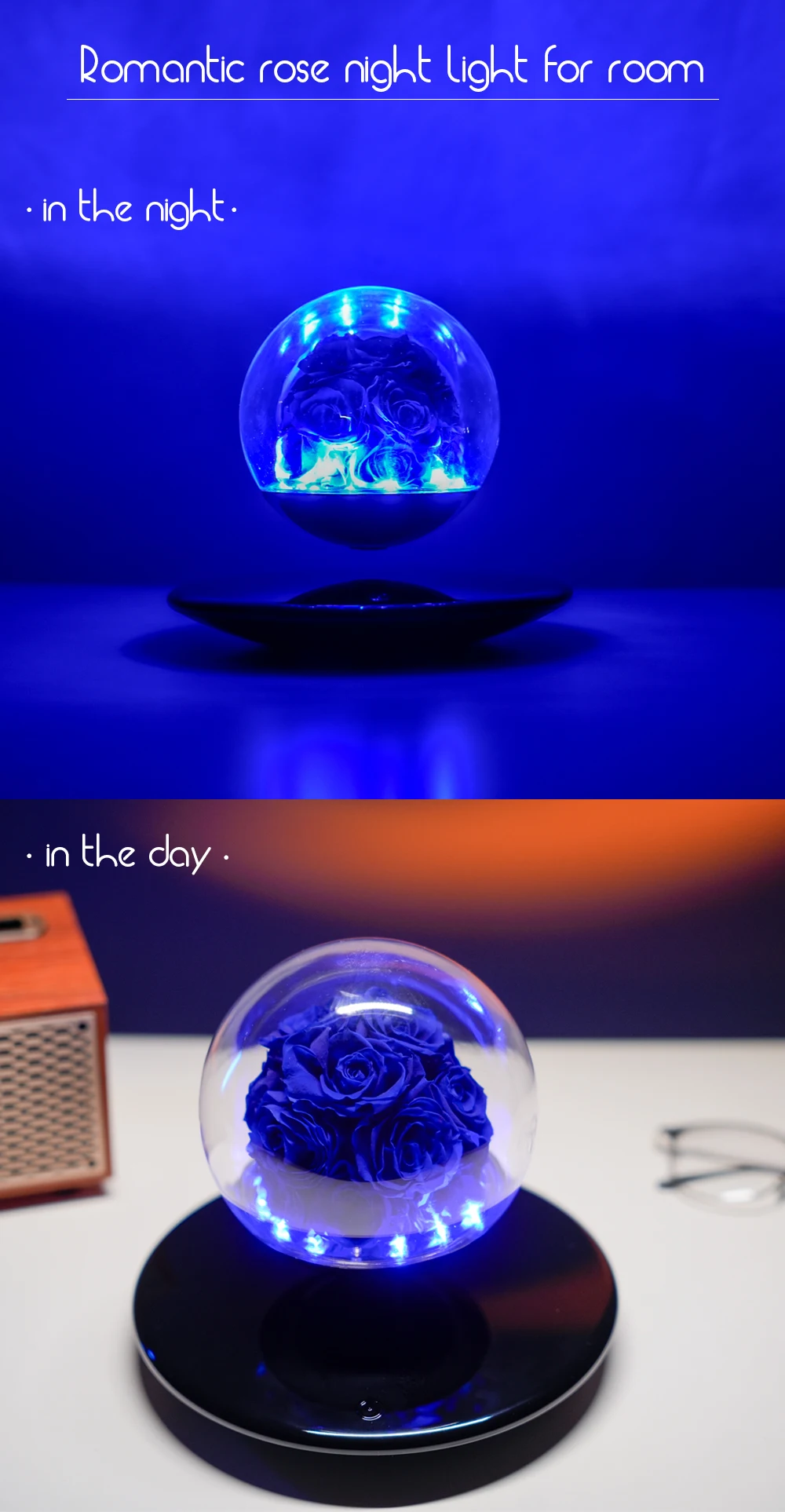 Schwebende Rose LED Magnetisch Konserviert Nachtlich
